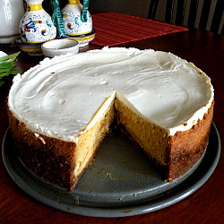 Bake for 1 hour and 5 minutes to 1 hour and 15 minutes or until a long wooden pick inserted in center comes out clean. (Mine took closer to an hour and 15.) Cool in pan on a wire rack for 10 to 15 minutes and then remove from pan to wire rack, and cool completely (about 1 hour).