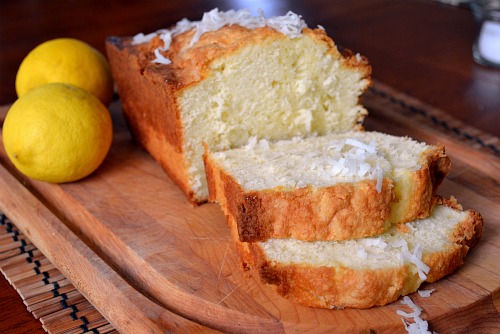 Alternate adding flour mixture and yogurt to butter mixture, beginning and ending with flour. Beat at low speed just until blended after each addition. Stir in lemon zest, lemon juice and 1/2 cup coconut. Pour batter into a greased and floured 9- x 5-inch loaf pan.