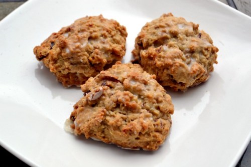 The bread was very easy to put together and didn’t even require the use of a mixer. I think I had it in the oven in under 15 minutes. Once it cooled I topped it with the glaze and then let the glaze set. I then sliced the bread into individual slices that I wrapped in saran wrap and placed in a gallon bag. I placed the bag in the freezer so I can grab a slice whenever I need a quick breakfast.
