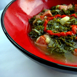 I was looking for something simple to make last night for dinner. I was browsing through the easy and healthy weeknight meals gallery on Epicurious and sent the link for this Portuguese Kale and Potato Soup recipe to Brandon. I was shocked when he said, “I’d eat that.” I still firmly believe that it’s only because this soup included sausage in the ingredient list! Also, kale is one of my grandmother’s signature dishes so Brandon has discovered that he loves it. I love using kale in recipes – it packs a HUGE nutrient punch. Check out this overview of the nutrients in boiled kale.